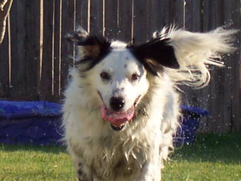 McGee is a Border Collie. Sort of. She is a mixed breed who was lovingly chosen from the local Humane Society with a description that read “Spaniel/Shepherd” mix. She is clearly neither. Her behavior, characteristics, and looks closely resemble those of a Border Collie except that her white coat speckled with black is a reversal from the traditional Border. The incessant eye stare, crouched position, and lightning quick moves, however, reveal the Border Collie ancestry.